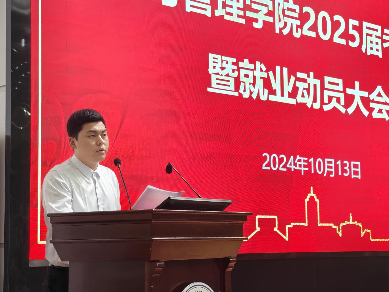 (通讯员 刘青沂 韩梦彦 徐子轩)为深入学习贯彻党的二十届三中全会精神,落实教育部关于高校毕业生就业工作部署,充分调动学生实习就业考研的积极性,10月13日晚七点,ylzzcom永利总站线路检测2025届考研誓师暨就业动员大会在12教405举行。三得利人才集团王雅诗总经理、ylzzcom永利总站线路检测副院长裴潇、党委副书记平先锋、21级辅导员李云妮、郭俊及21级全体本科生参加活动,本次大会由郭俊老师主持。