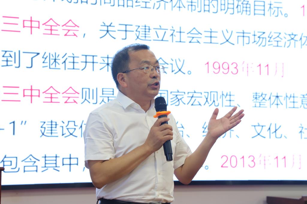 会上,樊帆首先就党的二十届三中全会的召开背景、重要意义及主要议程进行了全面介绍,同时介绍了对我国经济与社会发展有重大影响的十一届三中全会、十二届三中全会、十四届三中全会、十八届三中全会,使教职工们深刻感受到中国特色社会主义事业在改革开放大潮中的蓬勃发展。