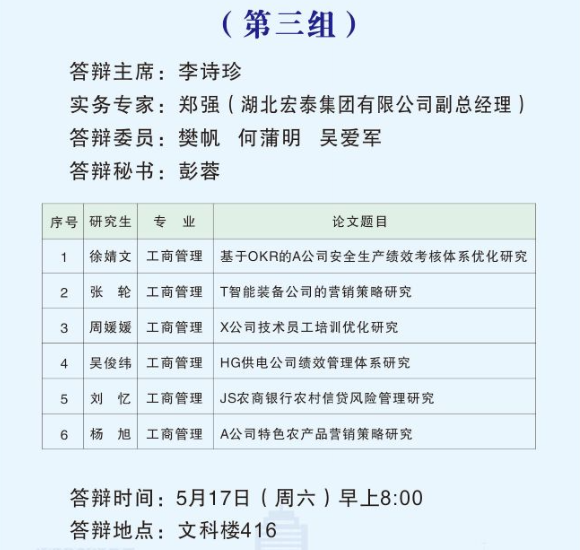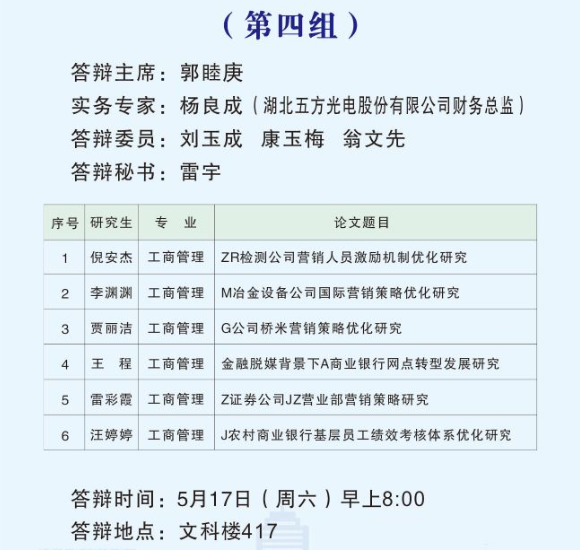 根据学校研究生教育管理工作安排,ylzzcom永利总站线路检测2025届MBA硕士研究生学位论文答辩工作于2025年5月17日举行。