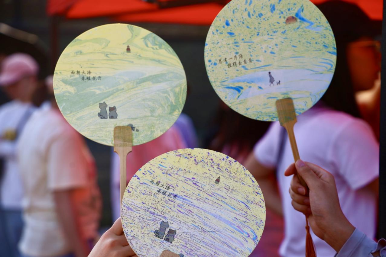 DIY学士帽和漆扇创作成为全场的创意热点,空白的扇面在画笔与颜料的勾勒下化作个性符号,娇艳的鲜花、多样的彩笔、五彩的卡纸,同学们绘出星辰大海、写下毕业箴言,化作学士帽上最独特的风景,承载着独一无二的青春宣言。