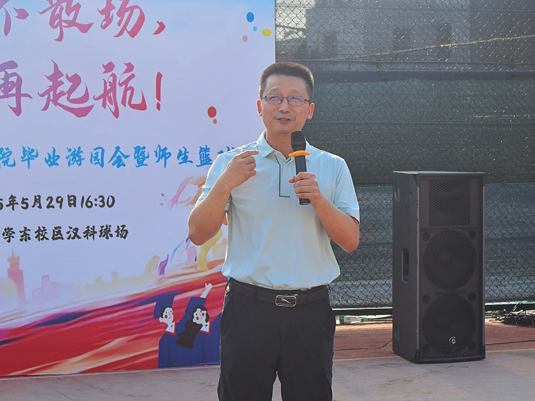 游园会在毕业生辅导员贺雄、郭俊与毕业生代表宋博、胡宇航共同为大家带来的歌曲串烧中拉开帷幕,一曲《你曾是少年》寄语大家在未来的道路上保留一份少年的澄澈,以梦为马,不负韶华与热望。陈承代表学院全体老师为同学们送上了毕业祝福,他鼓励同学们在以后的人生中能不惧风雨和骄阳,以积极的形态和坚韧的品格书写人生更壮丽的画卷,常回学院看看。樊帆在舞台中央执起启航金槌,和全场老师同学一同宣布活动开始。
