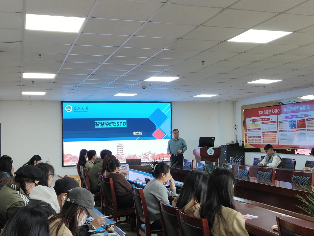 随后,唐立新教授深入剖析了智慧物流SPD(Supply Processing & Distribution)模式的运作机制,详细讲解了该模式"供应-加工-配送"的全流程管理体系。唐教授还就医疗SPD的发展历程、未来趋势以及市场规模等进行了专业分析,为研究生们提供了"智慧医疗供应链"和"区域物流资源整合"等具有实践价值的研究方向。