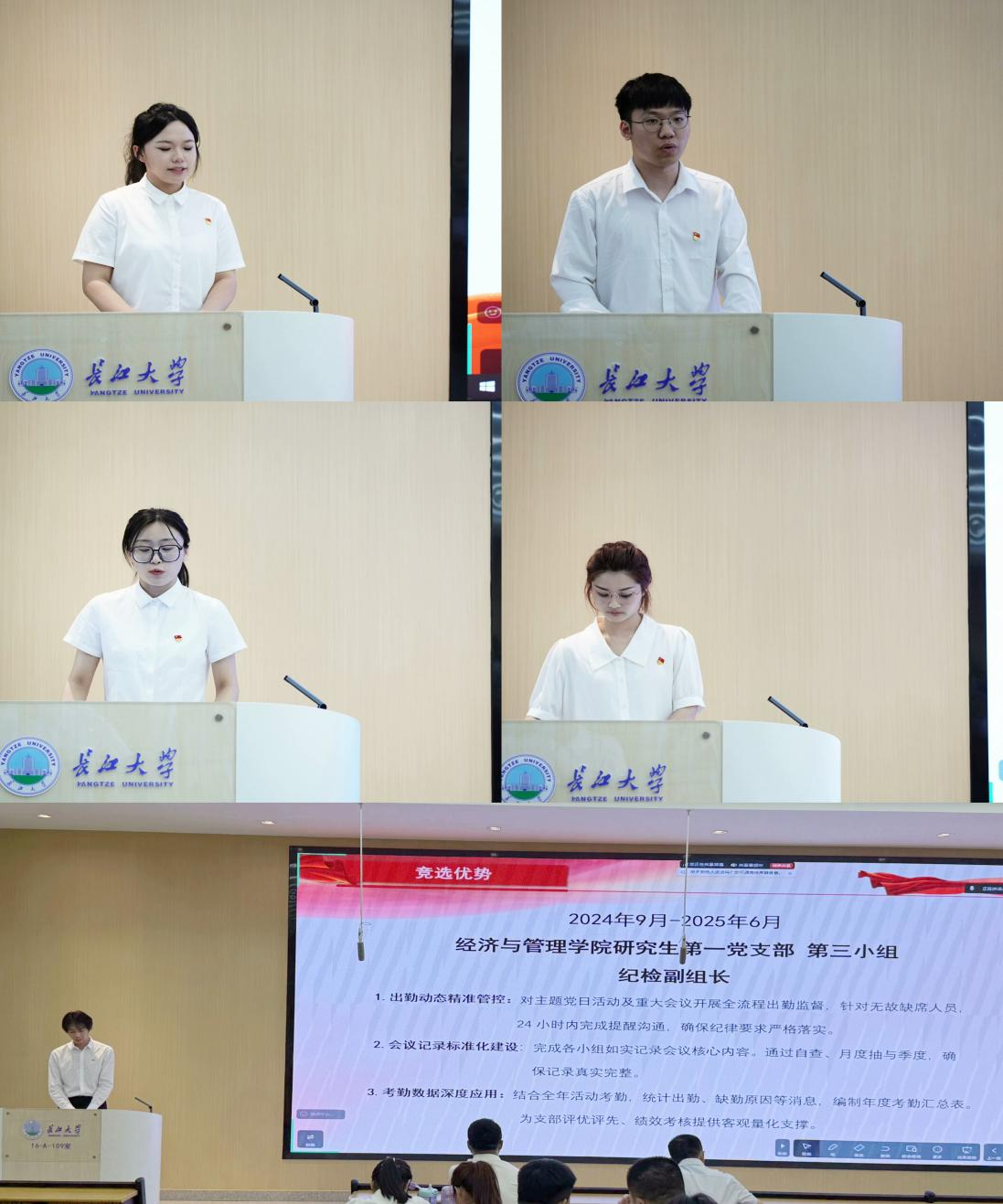 预选环节,候选人凌澜卿、张国伟、王若冰、王晓悦、毛博依次进行竞选陈述。他们结合自身优势与工作规划,围绕政治素养、工作经验和履职设想等方面展开陈述,表达了为支部发展贡献力量的决心。整个过程充分展现了候选人的风采和党员们对支部建设的高度责任感。